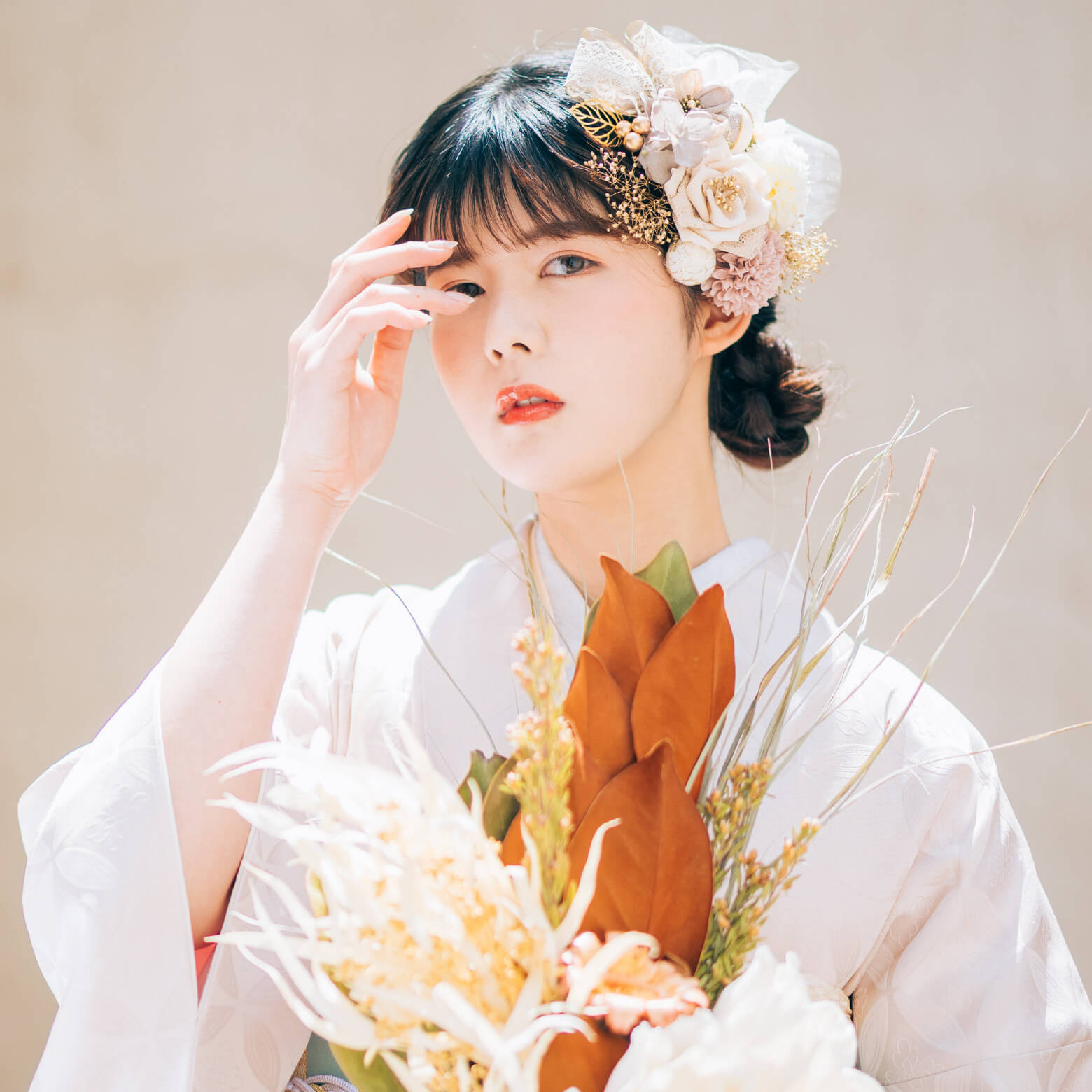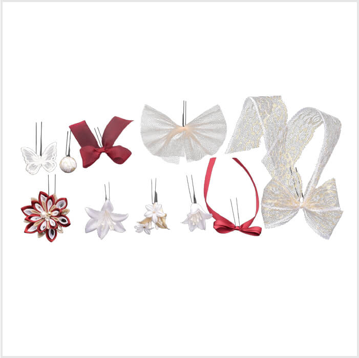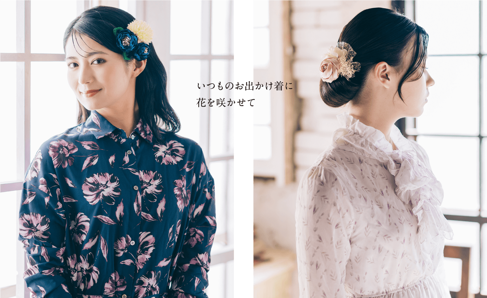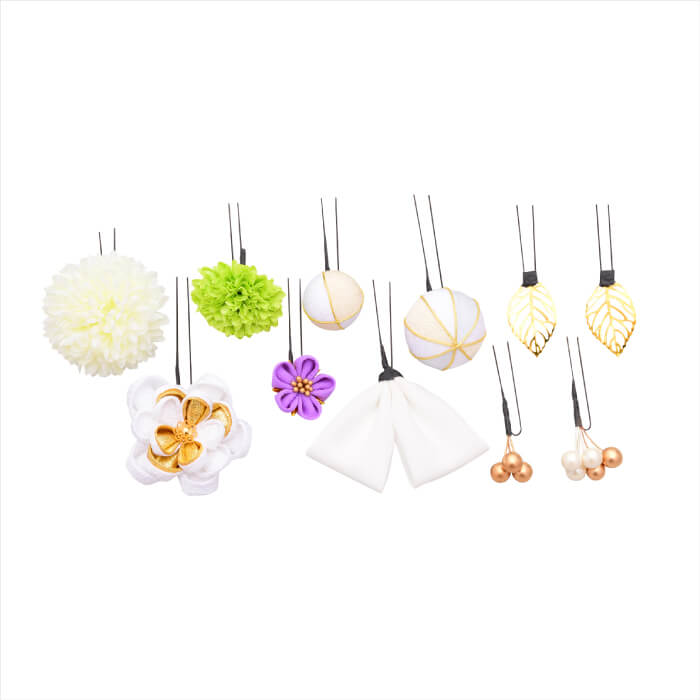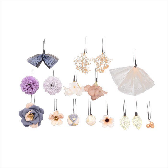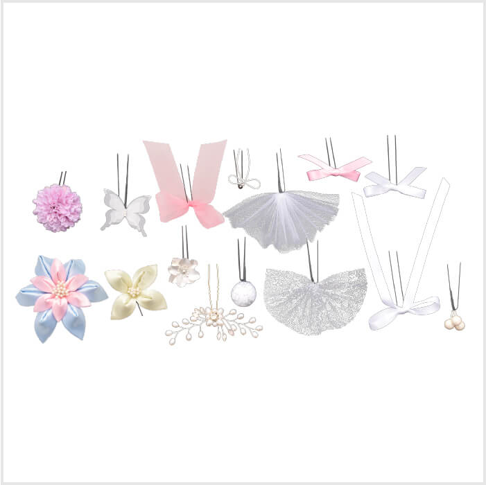 アレンジ性に優れヘアスタイルに合わせて全体に散りばめたり、集め合わせたりと自在に使用できます。
