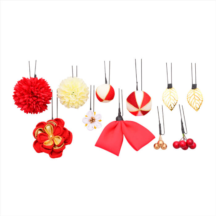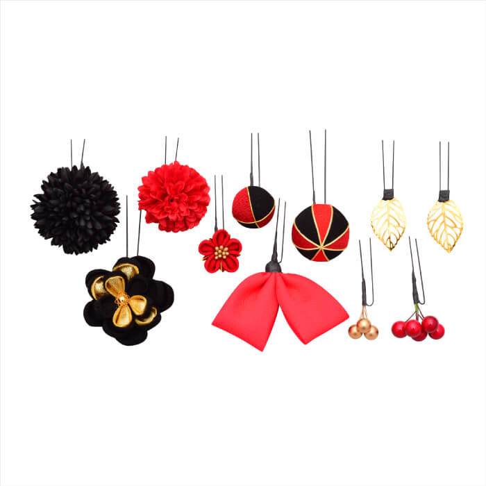 飾りはすべて別々に分かれて、留め具はシンプルなUピン仕様です。