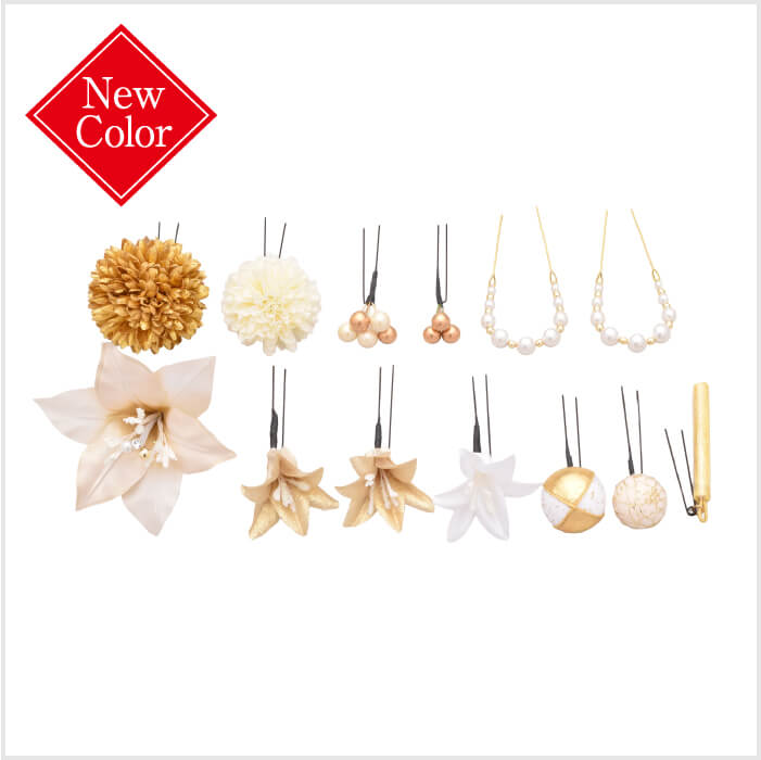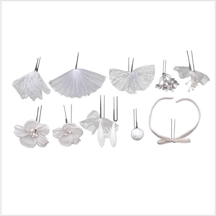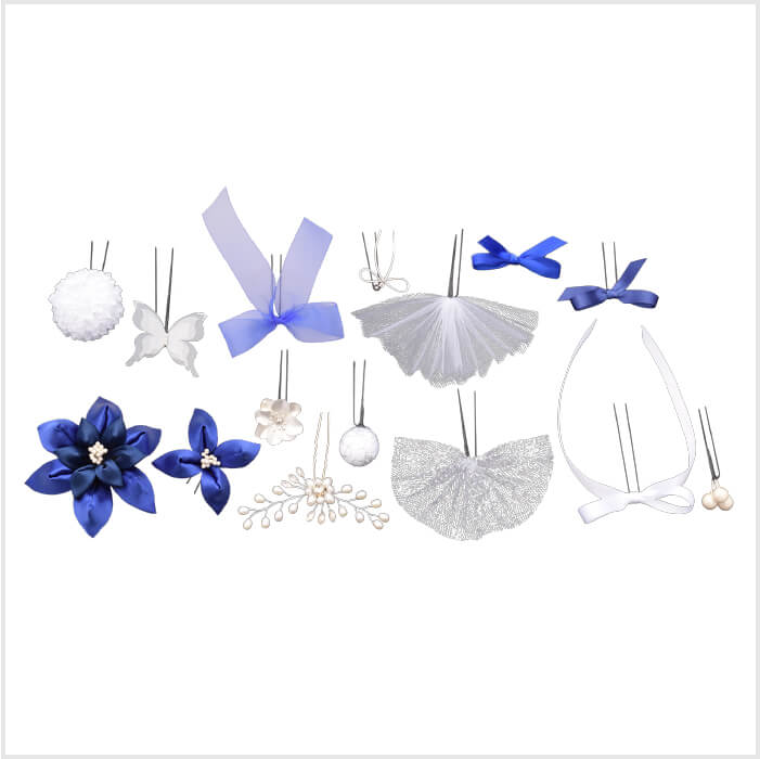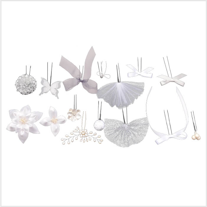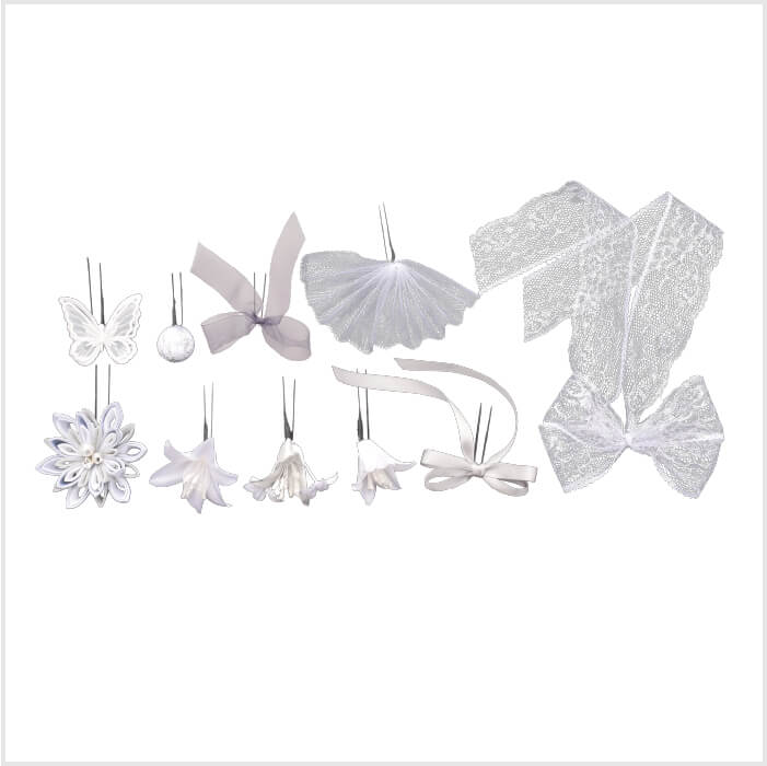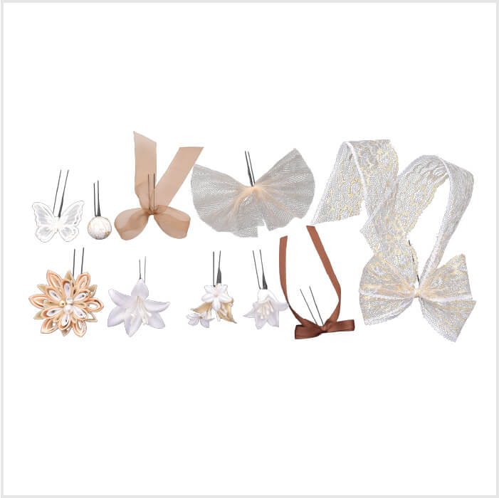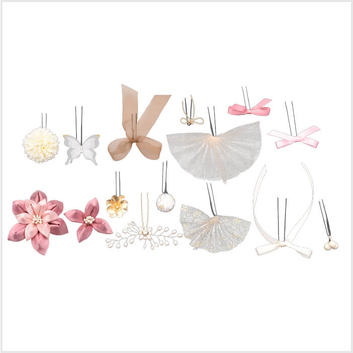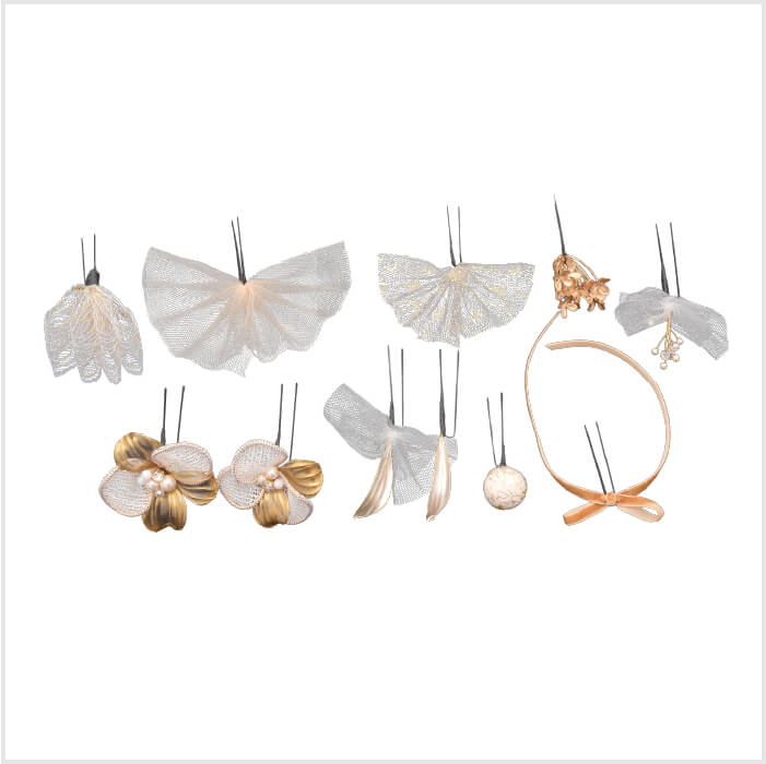 アレンジ性に優れヘアスタイルに合わせて全体に散りばめたり、集め合わせたりと自在に使用できます。
