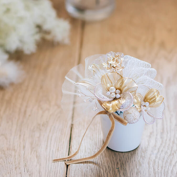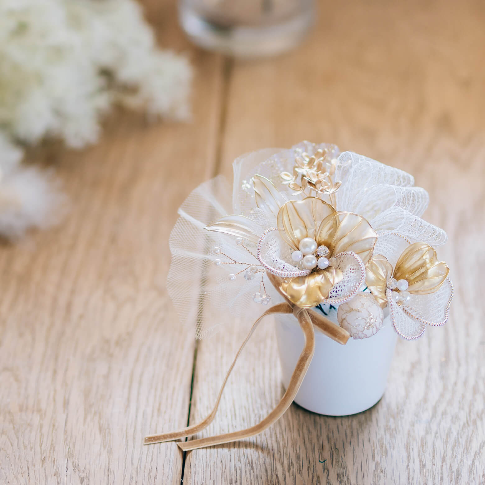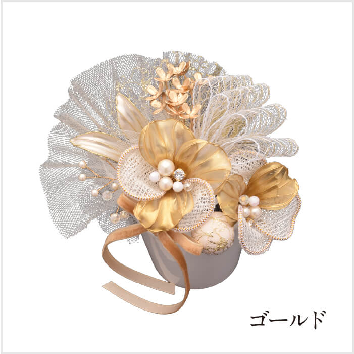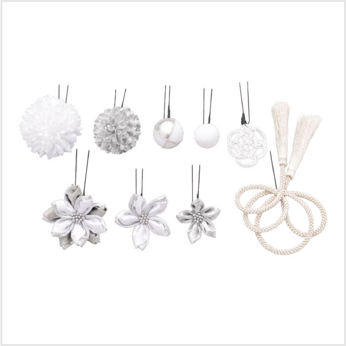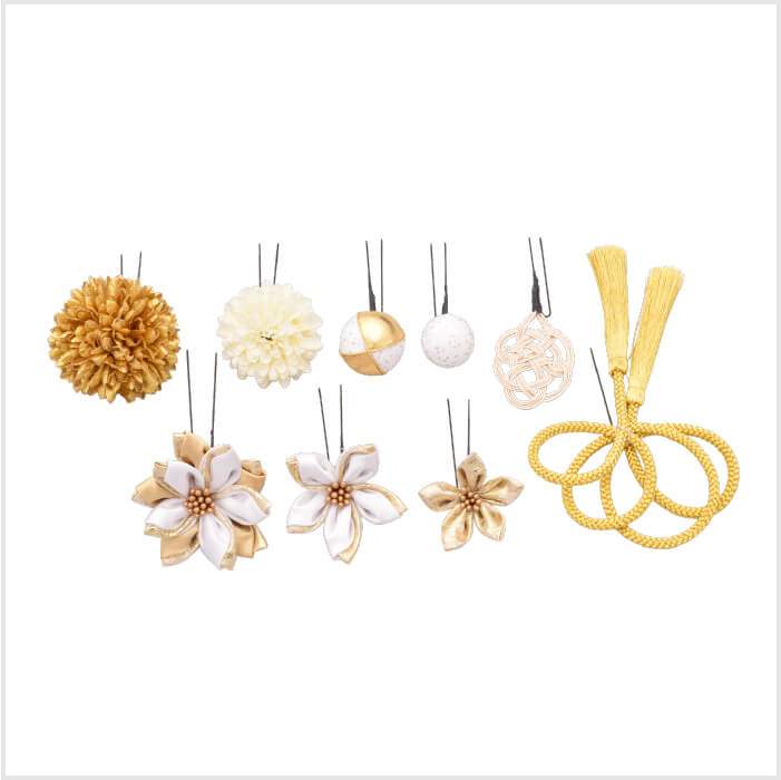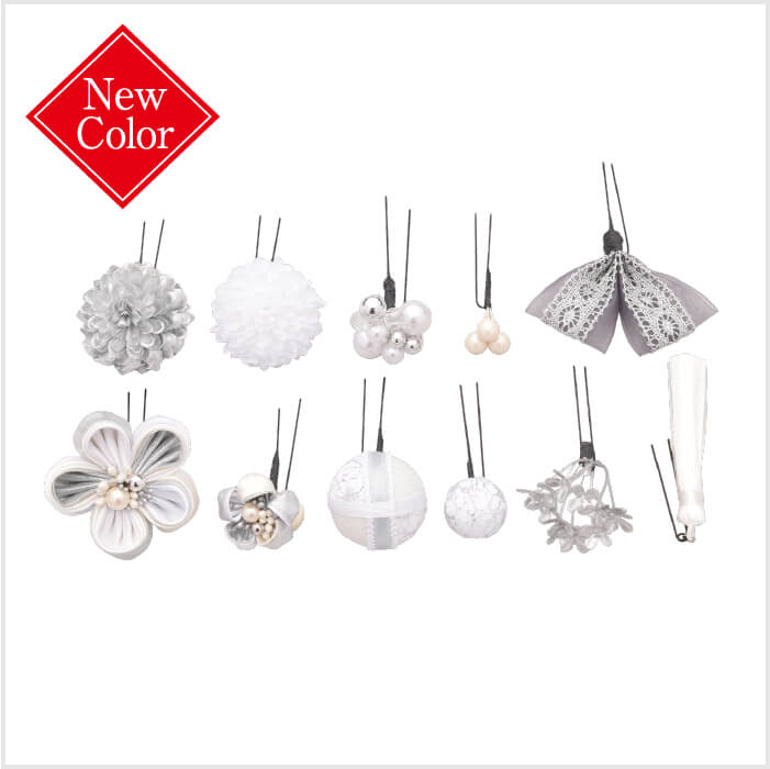 アレンジ性に優れヘアスタイルに合わせて全体に散りばめたり、集め合わせたりと自在に使用できます。